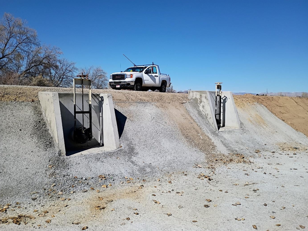 A view of headgates HL256 & HL255 shown inserted within new concrete H-walls.